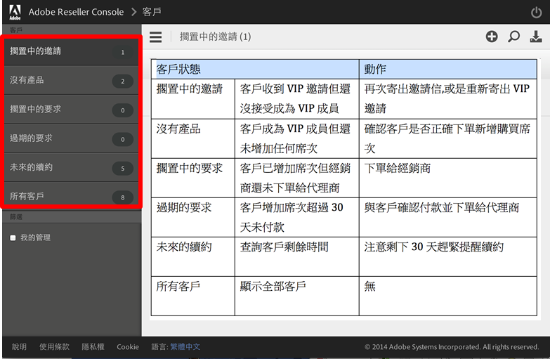 經銷商在做 Adobe CC 銷售時需登錄 Adobe CC Reseller Console 網頁當中,去管理客戶訂購 Adobe CC 狀態.