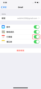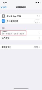 IOS如何同步google行事曆 2018-11-08 lin ken Apple產品, HOW TO USE, iOS 0 習慣使用google行事曆或是從android系統轉ios的用戶,可以按照本文操作將之前的行事曆同步到iphone上。 1.進入設定 2.點選密碼與帳號 3.點擊Gmail 4.打開行事曆