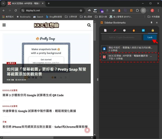 如果你在使用 Chrome 或 Edge 時,有重要或不想被隨便看到的書籤,「側邊書籤欄」擴充功能提供了加密功能來保護我們的隱私書籤。無論是工作機密、私人資料,還是其他敏感信息書籤,都可以輕鬆加密並鎖定,確保只有你能訪問。這個擴充功能不僅操作簡便,還能有效防止他人隨意瀏覽你的書籤,增強了瀏覽器的隱私保護。