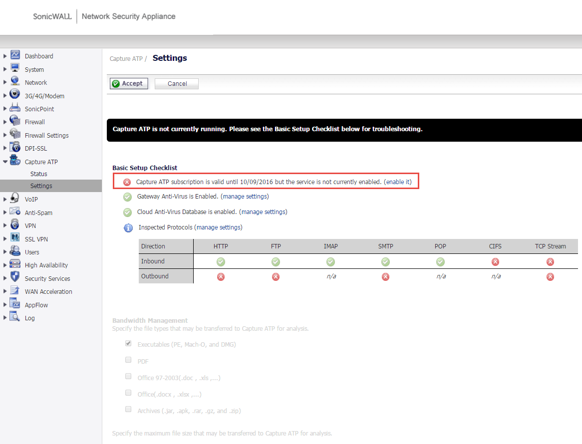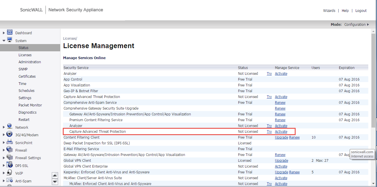 - Capture ATP功能是Sonicwall 防火牆進階功能,能幫助使用者更精準判斷一個檔案是否有害,進而阻擋
