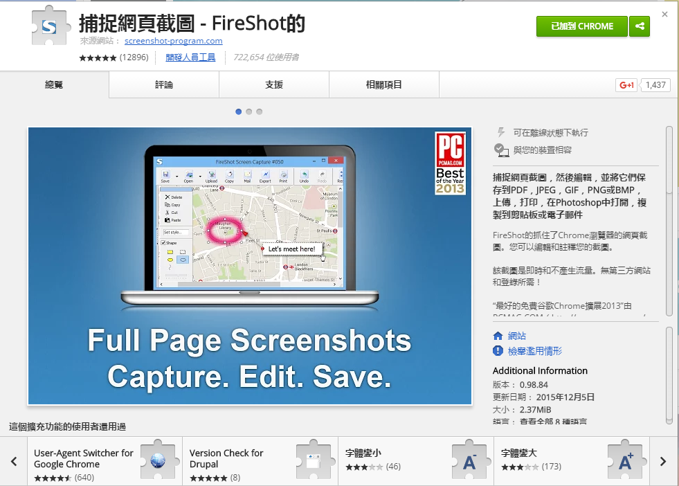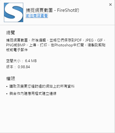 讓我來推薦大家一個超級好用的網頁擴充程式,讓你從此一指搞定:「捕捉網頁截圖」,但它有點繞舌,我們就先簡稱「S」,「S」是Chrome線上應用程式商店的免費資源,它免費的功能可以快速截圖並另存成PDF、PNG格式,收費的話就能升級成可編輯圖片,並能另存更多個圖片格式,下面將一一示範給大家看它的便利功能。