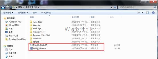 4. 檢查剛才解壓縮的路徑(C槽)會有兩個檔案如下圖,其中ModifyDWGCP.exe是修改頁碼的工具,但此工具必須在命令提示字元下執行。