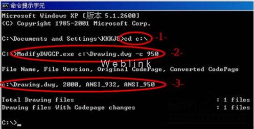 6. 先切換到修改工具ModifyDWGCP.exe所在的目錄,再輸入指令與相關參數執行工具即可。