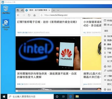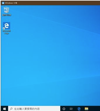 步驟1.啟動 Windows 沙箱App後,會出現一個虛擬化的 Windows 10桌面環境,網路連線會自動設定完畢,整體看起來跟普通系統沒有太大不同。
