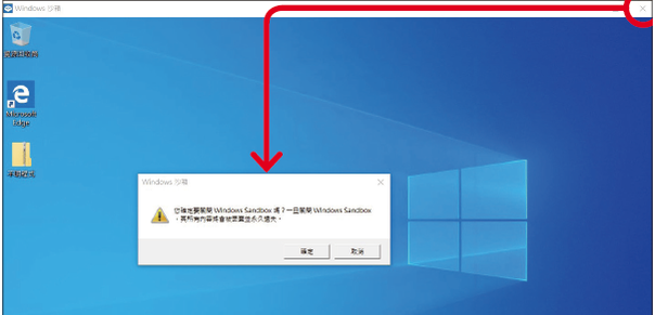 步驟5.只要按下 Windows 沙箱 App 右上角的「X」,就會跳出詢問框確認是否要離開 App,所有在沙箱中進行過的動作、儲存資料等都會永久刪除。