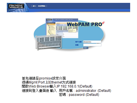 Promise VessRaid 登入管理介面及磁碟陣列設定